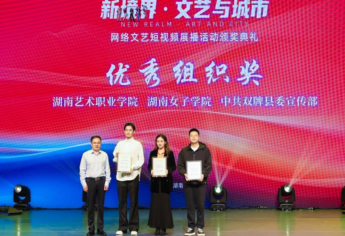 本网讯(文学与传播学院 赵三文 麻敏)4月22日,由文学与传播学院院长刘琼负责,李艺晨、贾南、宁波、林伊涵、李明哲老师参与的《湖湘非遗“数”传承——湖湘非遗文化数字化传播》案例获得2025年湖南省社会科学普及“优秀案例”。4月24日,由湖南省文联主办的“新境界——文艺与城市”网络文艺短视频展播活动颁奖仪式在湖南省音乐厅隆重举行。我校推送涵盖微纪录片、短视频、音乐MV等多种形式共计30件作品参赛,5部作品入围本次展播,凭借出色表现我校荣获优秀组织奖,由我院教师麻敏指导学生刘元乔所创作品《走,去看展》被评为创新作品,学生李林玥所创作品《桥见长沙》获提名作品。