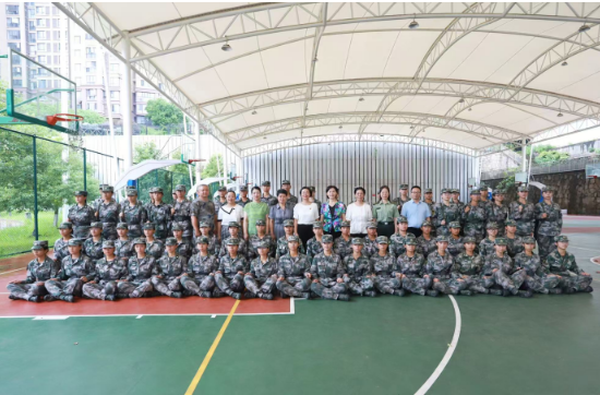 夏雨初至时,自训队同学仍在篮球坪雨棚坚持训练。段美娟为他们递上清凉饮品,提出三点殷切期望:一是以吃苦磨砺意志,肯定他们不畏酷暑风雨的拼搏精神;二是以奉献彰显担当,感谢大家放弃假期备战军训;三是以榜样激励成长,鼓励以中央党校博士研究生、首任自训队长李蔓为标杆,将奋斗融入国家发展。她还嘱咐带队老师合理安排训练,同学们齐声回应“不负期望!”